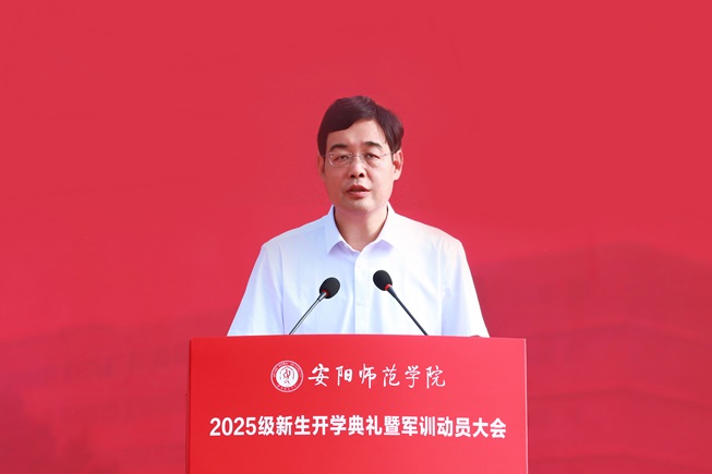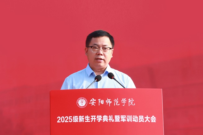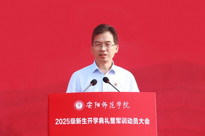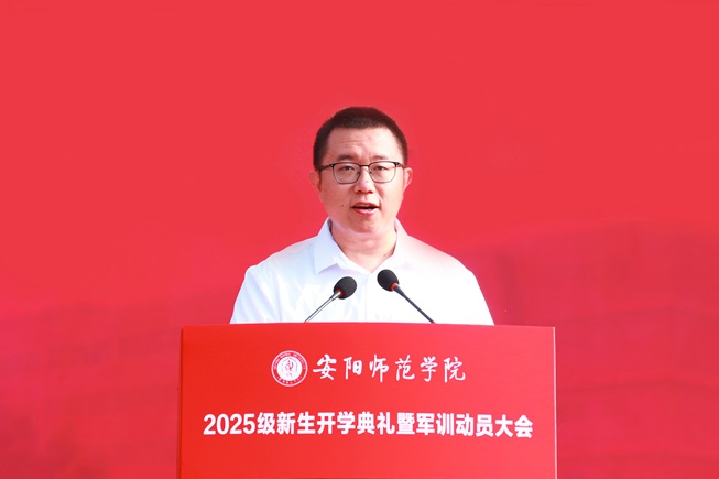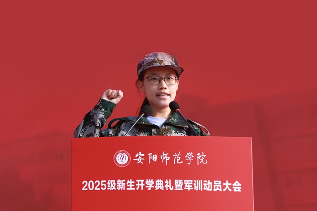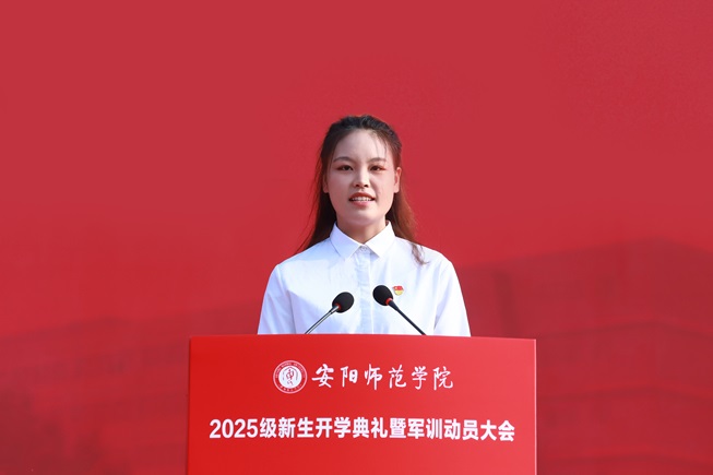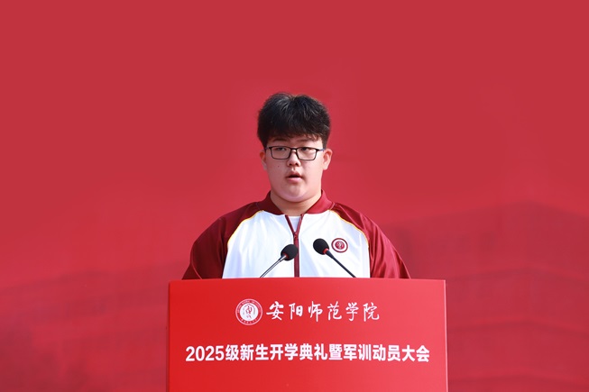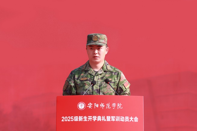 物理与电气工程学院教师鞠林,我校校友、资源环境与旅游学院2007届地理科学本科毕业生、南京师范大学地理科学学院副院长、博士生导师李红波教授,软件学院2022级学生冯淇馨,外国语学院2025级学生崔湛林,文学院2024级学生孟庆发分别作为教师代表、优秀校友代表、在校生代表、新生代表、军训教官代表发言。