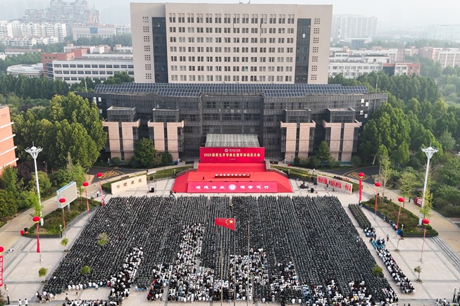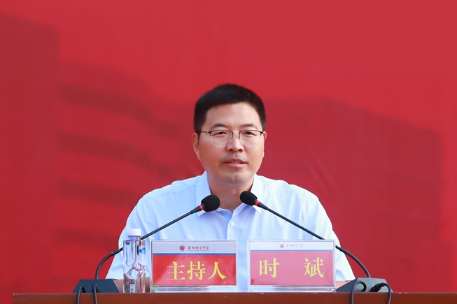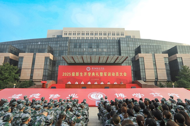 9月15日上午,2025级新生开学典礼暨军训动员大会在文鼎广场举行,校长孔国庆,党委副书记牛晓玉、王宏伟,纪委书记、监察专员仲利娟,副校长杜记民、刘振红、杨新宇、柏䶮、时斌,2025年校迎新工作领导小组成员参加大会。时斌主持开学典礼。