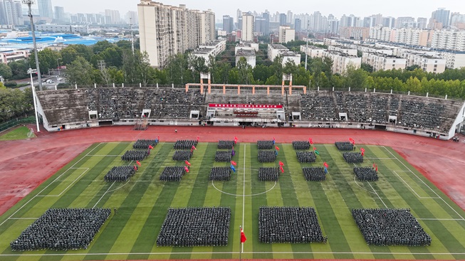 10月11日上午,2025级新生军训成果汇报暨总结表彰大会在弦歌大道校区北体育场和文明大道校区同时举行。校党委副书记王宏伟,副校长时斌,校军训工作领导小组成员单位负责人,各学院党委副书记、辅导员,全体教官和参训新生观看军训成果汇报。