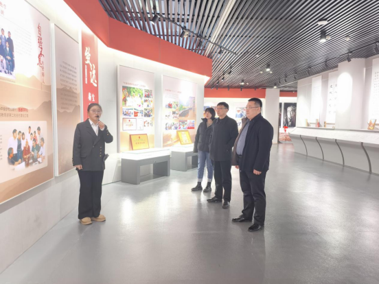 郭成立代表校友会对王东旭一行四人的到访表示欢迎。在参观期间,双方就红旗渠精神传承、实践、发扬及场馆建设等方面展开深入交流。王东旭对母校的关怀与支持深表感谢,他表示,一渠绕群山,精神动天下,本次回访母校参观“精神的力量--红旗渠精神育人成果展”,体会颇深,他们将以此次返校学习为新起点,把从母校汲取的精神力量转化为服务职工的实际行动,同时积极搭建校企联动桥梁,为母校发展贡献应有之力。参观过程中,王东旭一行不时驻足端详展品,与郭成立主任深入交流见解,对母校的育人成效给予高度认可。